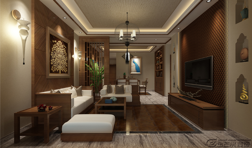興港瓏灣110㎡ 東南亞風格 客廳效果圖 金芒果裝飾設計師:徐祎珅 出品