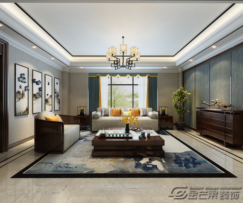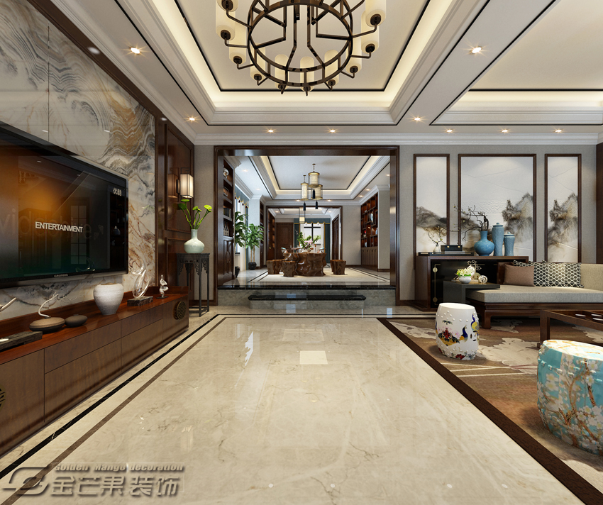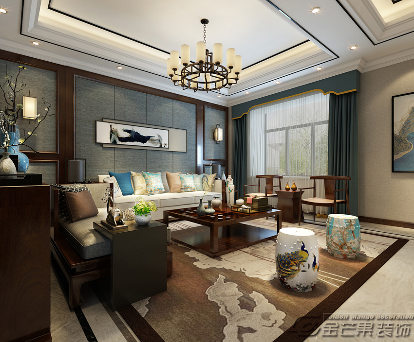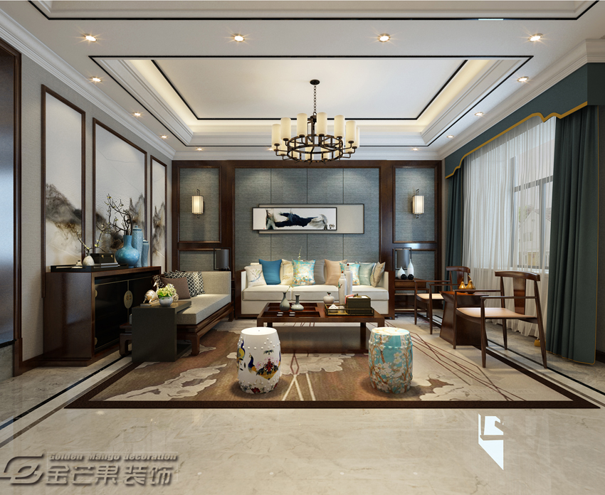 公務員小區260㎡ 簡中風格 客廳效果圖 金芒果裝飾設計師:劉峰 出品