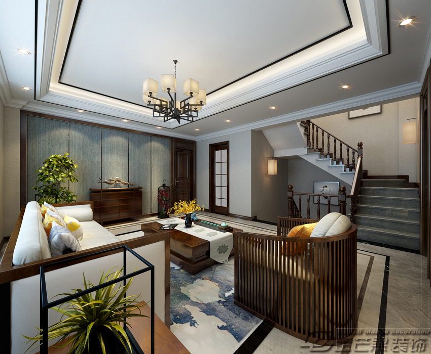 公務員小區260㎡ 簡中風格 花園效果圖 金芒果裝飾設計師:劉峰 出品
