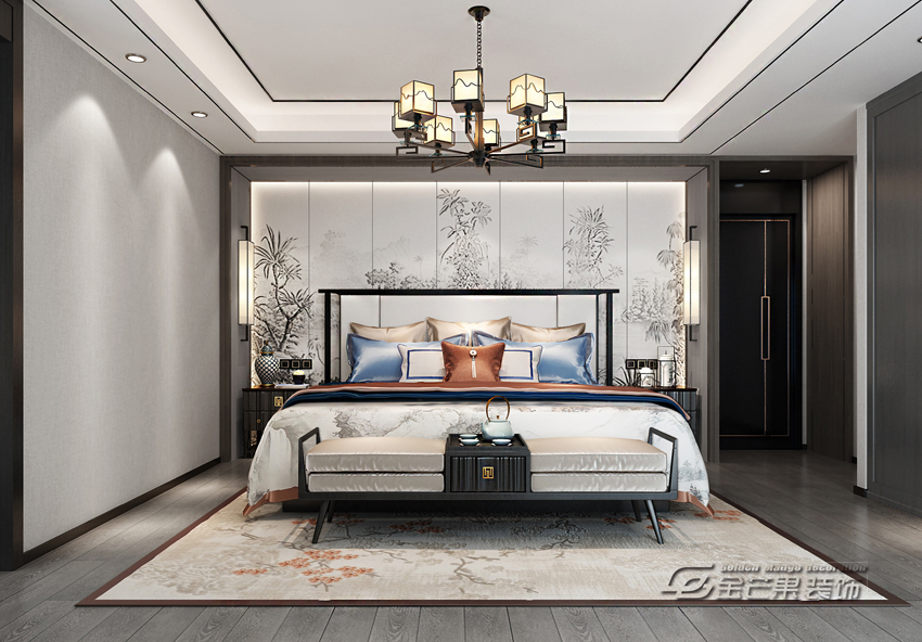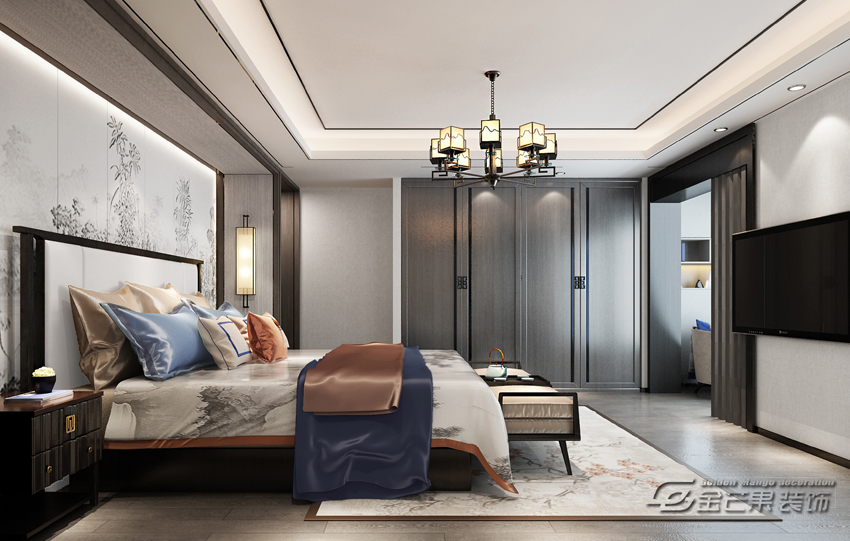 昆明湖瀾庭230㎡ 新中式風格 臥室效果圖 金芒果裝飾設計師:李葉飛 出品