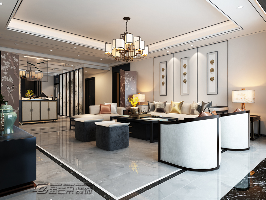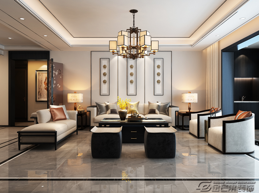 昆明湖瀾庭230㎡ 新中式風格 客廳效果圖 金芒果裝飾設計師:李葉飛 出品