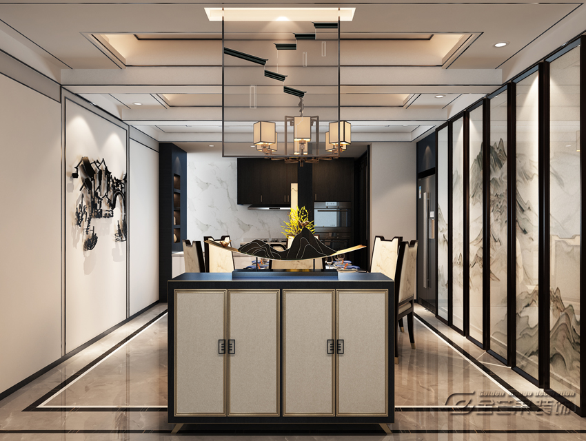 昆明湖瀾庭230㎡ 新中式風格 餐廳效果圖 金芒果裝飾設計師:李葉飛 出品
