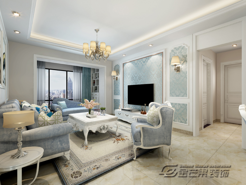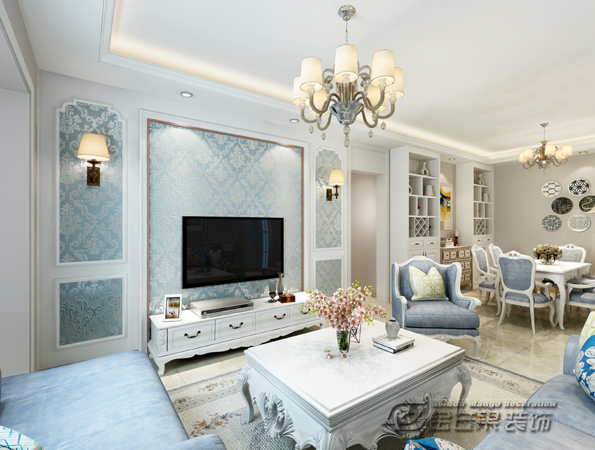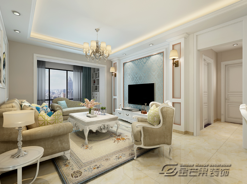 海倫國際123㎡ 簡歐風格 客廳效果圖 金芒果裝飾設計師:浦里哲 出品
