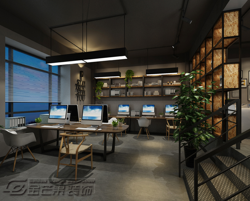 思蘭雅苑350㎡ 工業(yè)風(fēng)格 工作區(qū)效果圖 金芒果裝飾設(shè)計(jì)師:李應(yīng)剛 出品