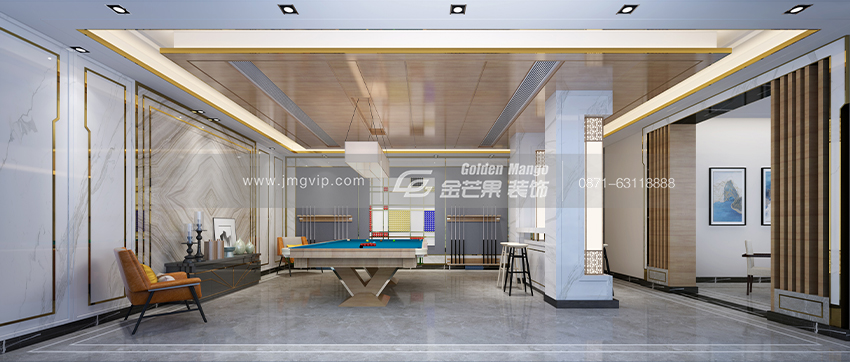 中式風格 臺球室效果圖 金芒果裝飾設計師:徐國兵