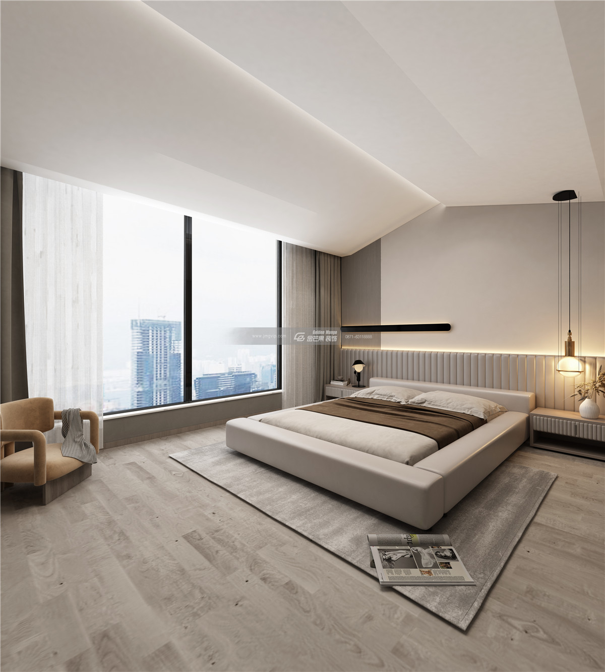 東旭·御山湖 800㎡ 現(xiàn)代風(fēng)格 臥室效果圖 金芒果裝飾設(shè)計(jì)師:徐國兵 出品