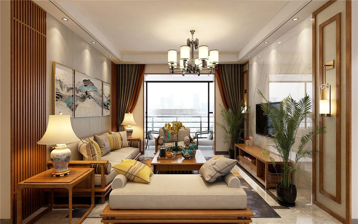 金地云海 新中式風格 客廳效果圖