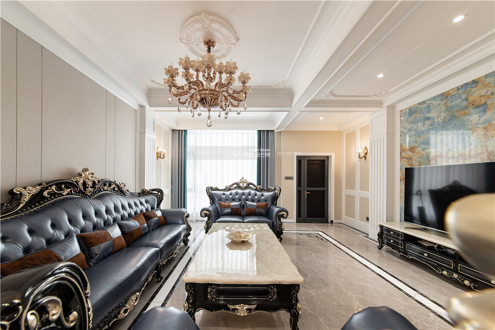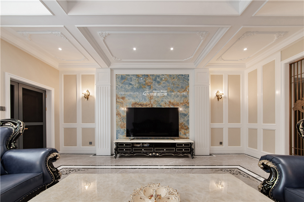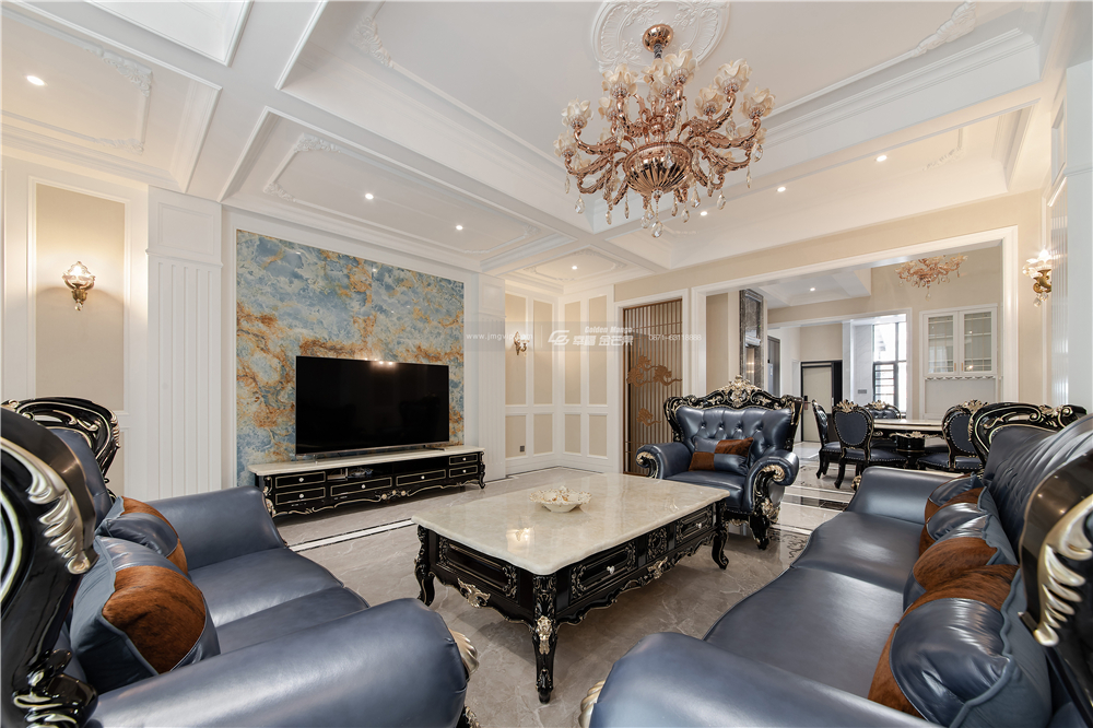 招商海公館 450㎡ 簡歐風(fēng)格 客廳實(shí)景圖 幸福金芒果裝飾:出品