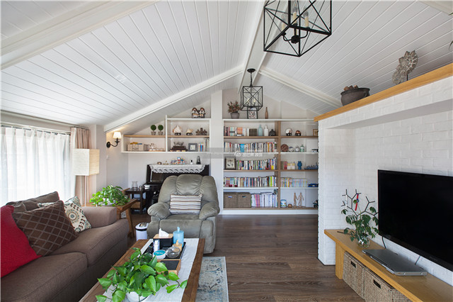 獨特的電視背景墻設計,突出自由、放松的美式氣息,復古文藝的氣質讓家充滿家居魅力。紅色的靚麗,白色的純粹,個性而愜意。