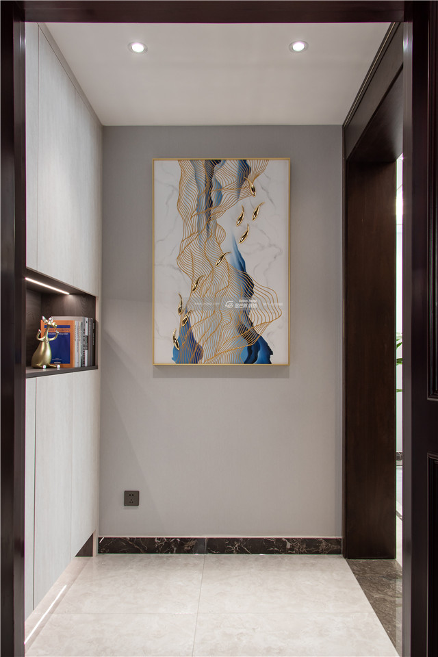 一幅精致的金屬元素掛畫,將入戶視線聚焦于此,一進門就感受到精致、大氣、輕奢的氛圍。