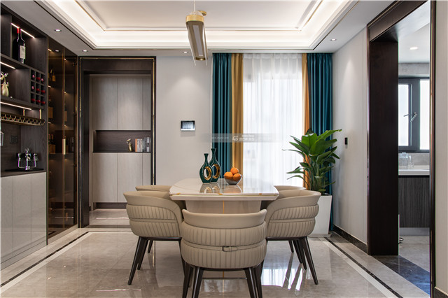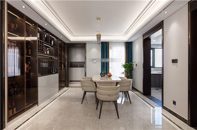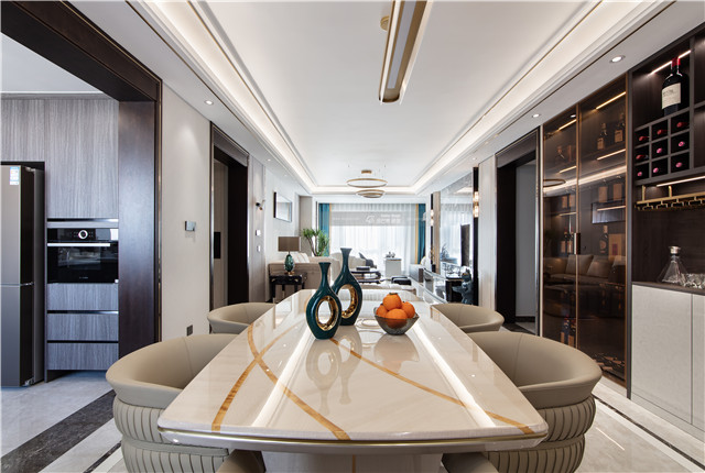 大理石臺面搭配品質(zhì)感餐坐椅,木材和灰玻結合的餐邊柜,在光影之間營造高級氛圍感。通透的玻璃材質(zhì)讓精致的時尚格調(diào)彰顯。