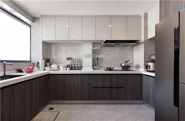 灰色的沉靜氣質(zhì),讓廚房空間變得沉靜干凈,亦是舒適的家居品質(zhì)。