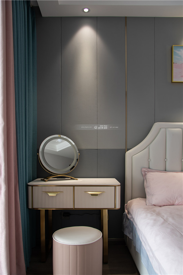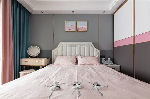沉靜的灰色和粉色,搭配出溫馨、恬靜的空間氛圍,粉粉嫩嫩的顏色讓臥室變得精致且可愛。個性氣質(zhì)的空間格調(diào)。