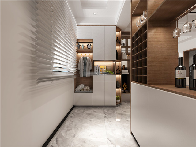 入戶是溫馨的木色,純凈的顏色讓人身心放松,定下全屋慵懶、舒適的基調。玄關柜收納下生活的瑣碎,變得井井有條。