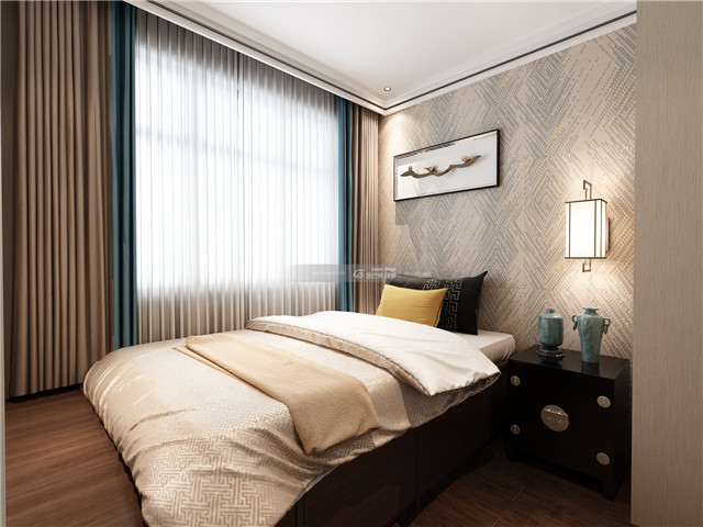 花鳥圖案床頭背景墻,渲染超棒的中式貴氣,雅逸的格調既有中式個性又有品質感。