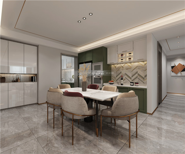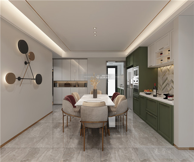 精致的餐桌椅貫穿全屋紅綠交織的格調,一切都很好地表達精致與韻味。