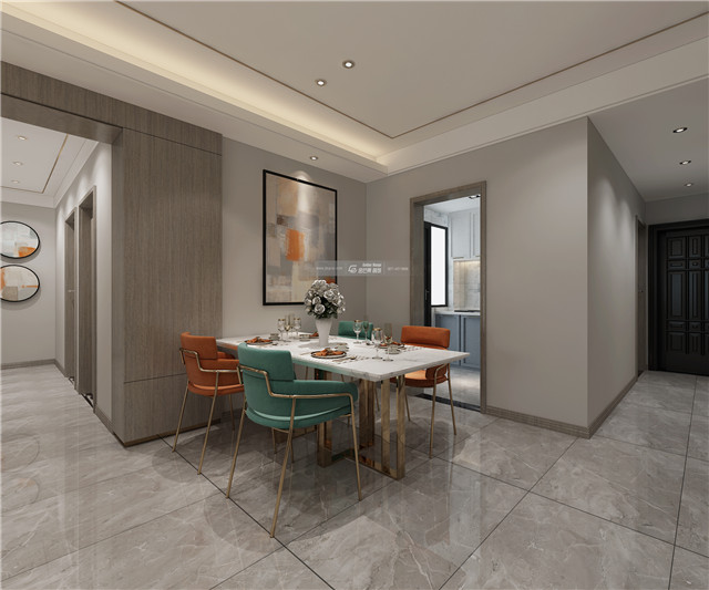 簡約白墻,溫厚的木材,通過家具的搭配雖簡約卻品質(zhì)感自現(xiàn),大理石背景墻彰顯簡約的高級。金屬元素的單椅、餐座椅,把輕奢氛圍營造得恰到好處。