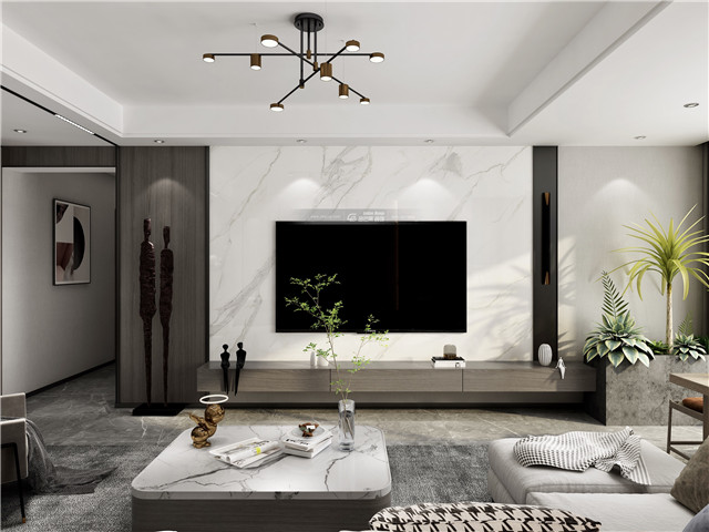 大理石電視背景墻淡淡的花紋,既簡約又展現低調的高級,不會顯得單調。