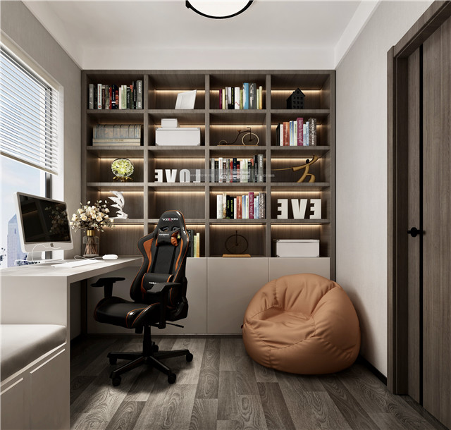 大量的收納空間讓書房變得有序而功能強大。為辦公休閑創造安逸、愜意的空間體驗。