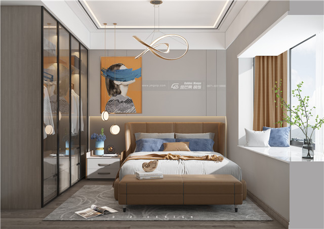 明媚溫暖的顏色,大氣端莊有格調。玻璃和皮革材質的加入,有種時尚高級感,又展現臥室的溫馨溫暖和舒適感。