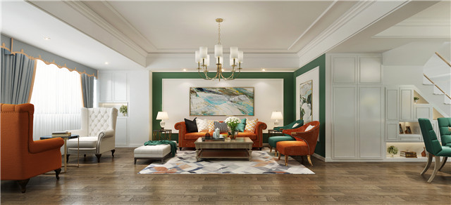 隨性慵懶的美式風(fēng)格,明亮鮮艷的色彩彰顯自由不羈的家居態(tài)度,明麗的顏色熱情活潑。綠色和橙色的撞色讓家居充滿個(gè)性的色彩,溫厚的木地板和美式家具,讓家放松又自由,彰顯品質(zhì)感。