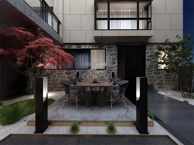 室外地面線條,花紋的運(yùn)用配上精美設(shè)計(jì)的餐桌, 再加之窗簾軟飾的精心設(shè)計(jì)和院內(nèi)綠植美化,漂亮又有品。
