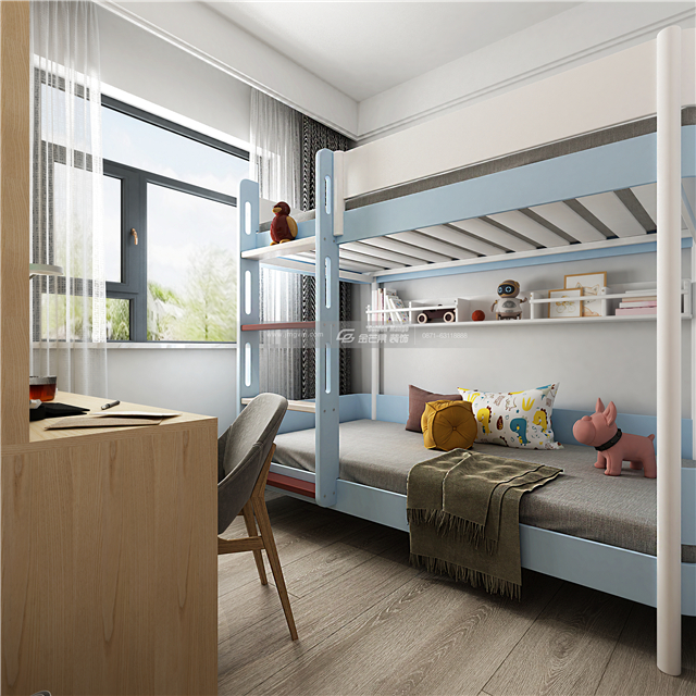 藍色上下床,溫馨可愛,功能實用,為孩子營造專屬的小天地。