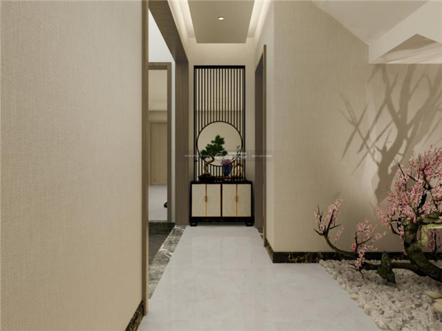 入口小景氣韻生動(dòng),玄關(guān)與偏廳透景相承,光影的隨機(jī)流動(dòng)增添了自然的趣味、涵養(yǎng)。