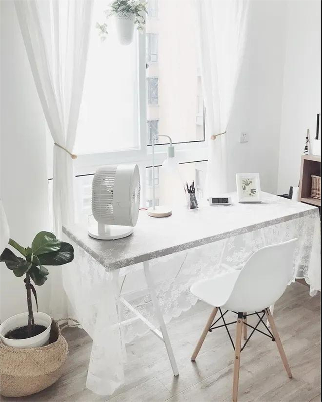 純白的紗簾是原木家具的絕佳伴侶,陽光透過一片純白在木地板上投下斑駁的影子,暖融融輕飄飄,身心都變得慵懶而輕盈起來。
