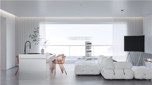 在一片白色中,陽光頃刻灑進(jìn),自由穿梭在空曠的空間,思緒亦清透得一層不染。白色的窗簾隨微風(fēng)輕輕擺動,一切美好得就像是住進(jìn)了小說里。