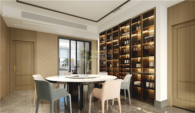 精致靚麗的餐邊柜襯著光影的效果,滿滿的儀式感,精致的圓桌,精美的餐具,在這里享受一頓精美的晚餐。餐椅用溫馨的顏色點綴,家居格調變得多變起來。