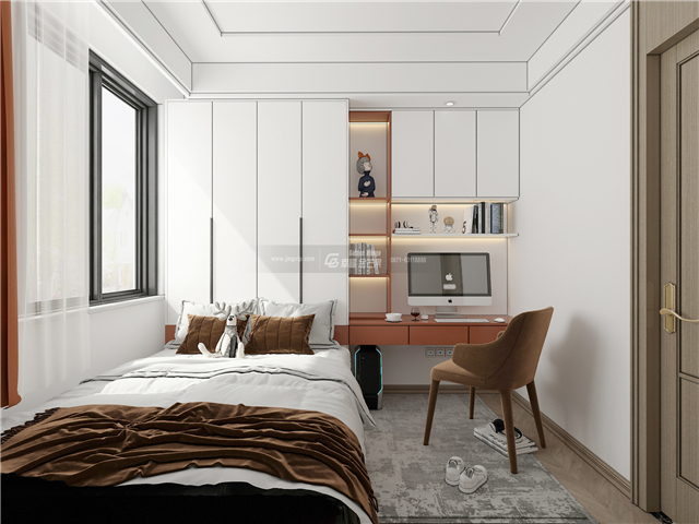 充滿童趣而天真自在,溫暖甜美的顏色讓小窩變得溫馨而安逸。休息和辦公兼具,同時還具備大量的儲物功能,實用又舒適。