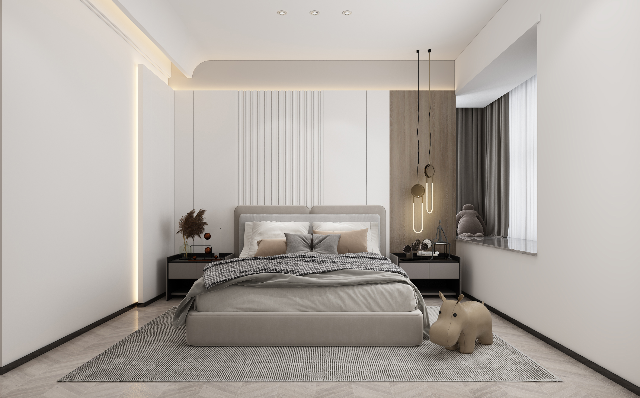 臥室設(shè)計(jì)延續(xù)整體白色的主色調(diào),暖色的光源,暖灰的調(diào)和,增添空間的層次感同時(shí)體現(xiàn)大氣的藝術(shù)審美,在靜謐而質(zhì)樸的氛圍中勾勒生活的詩(shī)意。