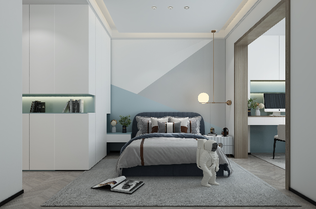 兒童臥室注重學(xué)習(xí)區(qū)域,一體式的書桌+書柜的設(shè)計(jì),能滿足孩子學(xué)習(xí)、書籍收納、玩具收納的需求,同時(shí)擁有獨(dú)立的個(gè)人空間,有助于培養(yǎng)良好的生活習(xí)慣