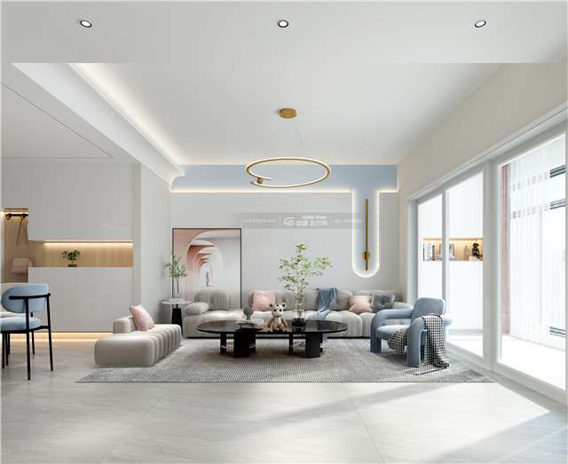 向天空借一點顏色,把它涂在墻上,把屬于大自然的空靈與清新,帶回家中。摒棄更多復雜的造型,用簡潔純粹的色彩醞釀純凈的家居氛圍。多用圓弧形家具造型,可愛溫柔,內(nèi)心亦變得柔軟起來。