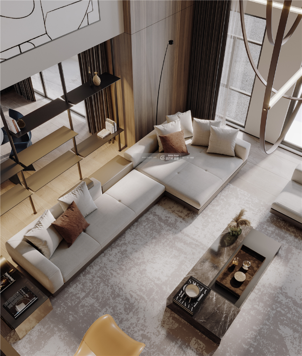 多種線型在客廳中完美組合,形成包容共生的和諧區域。