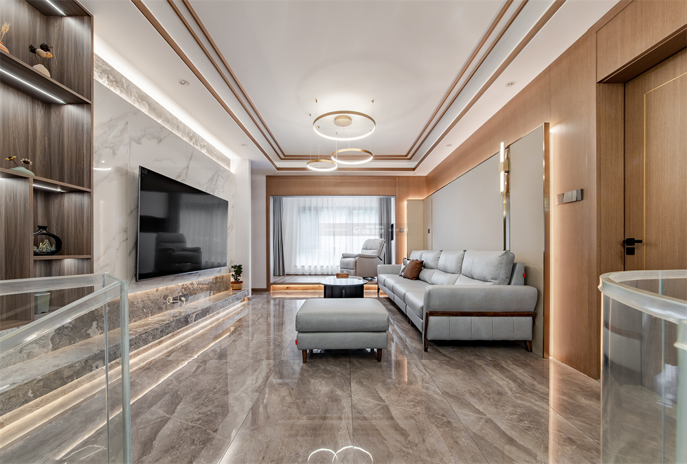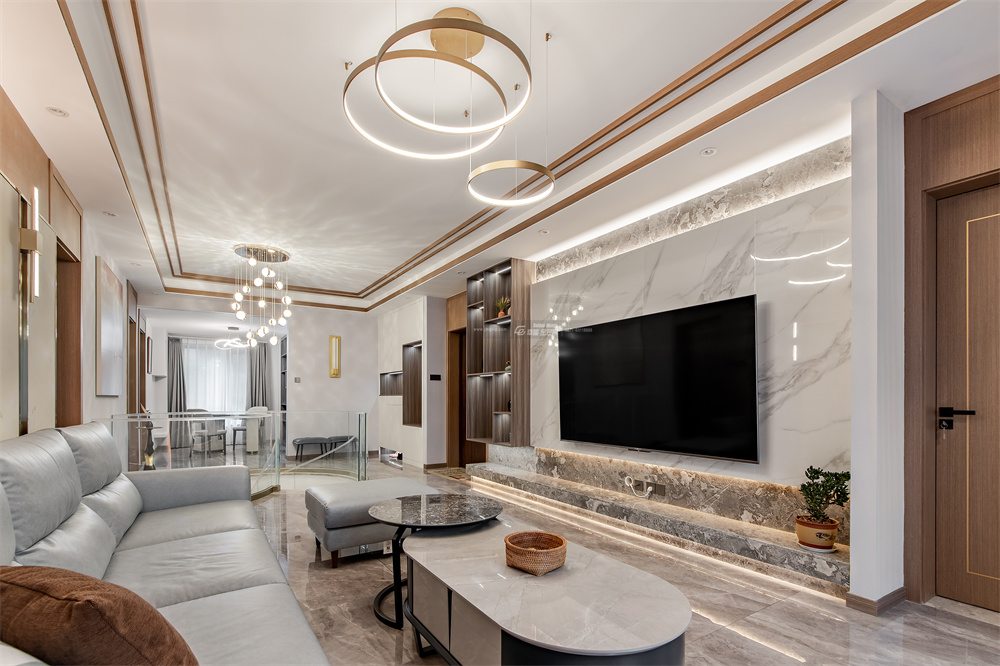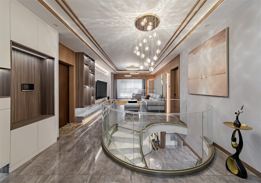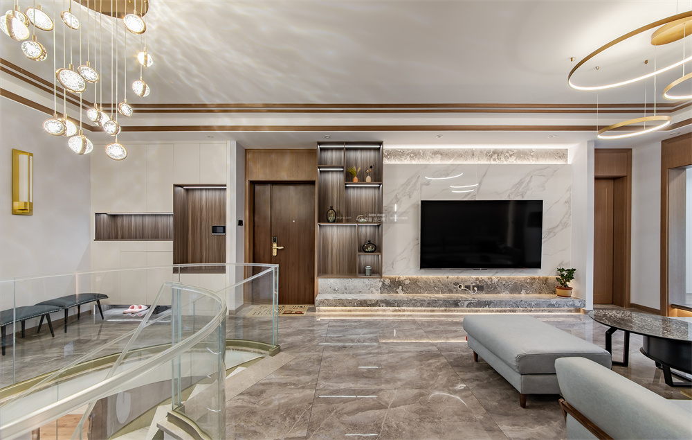 不同層次的大理石,起伏動人,以細膩而生動的描摹,表達著高端階層的審美品位和生活方式。瑩瑩的燈光,交錯間,營造出生活的華麗之資。