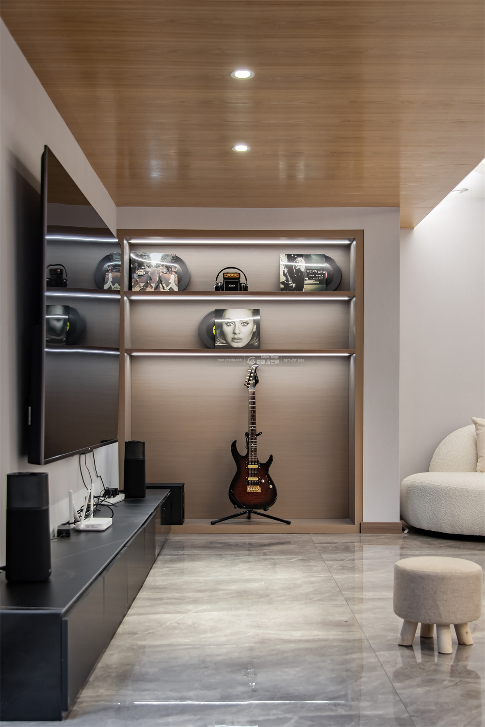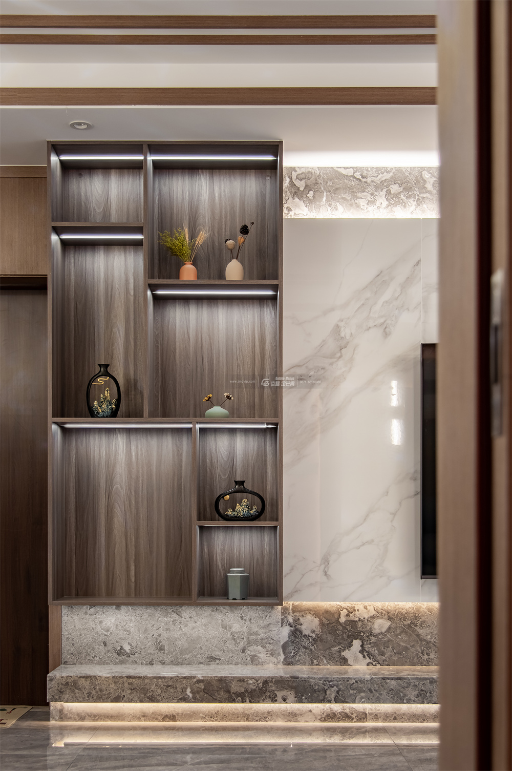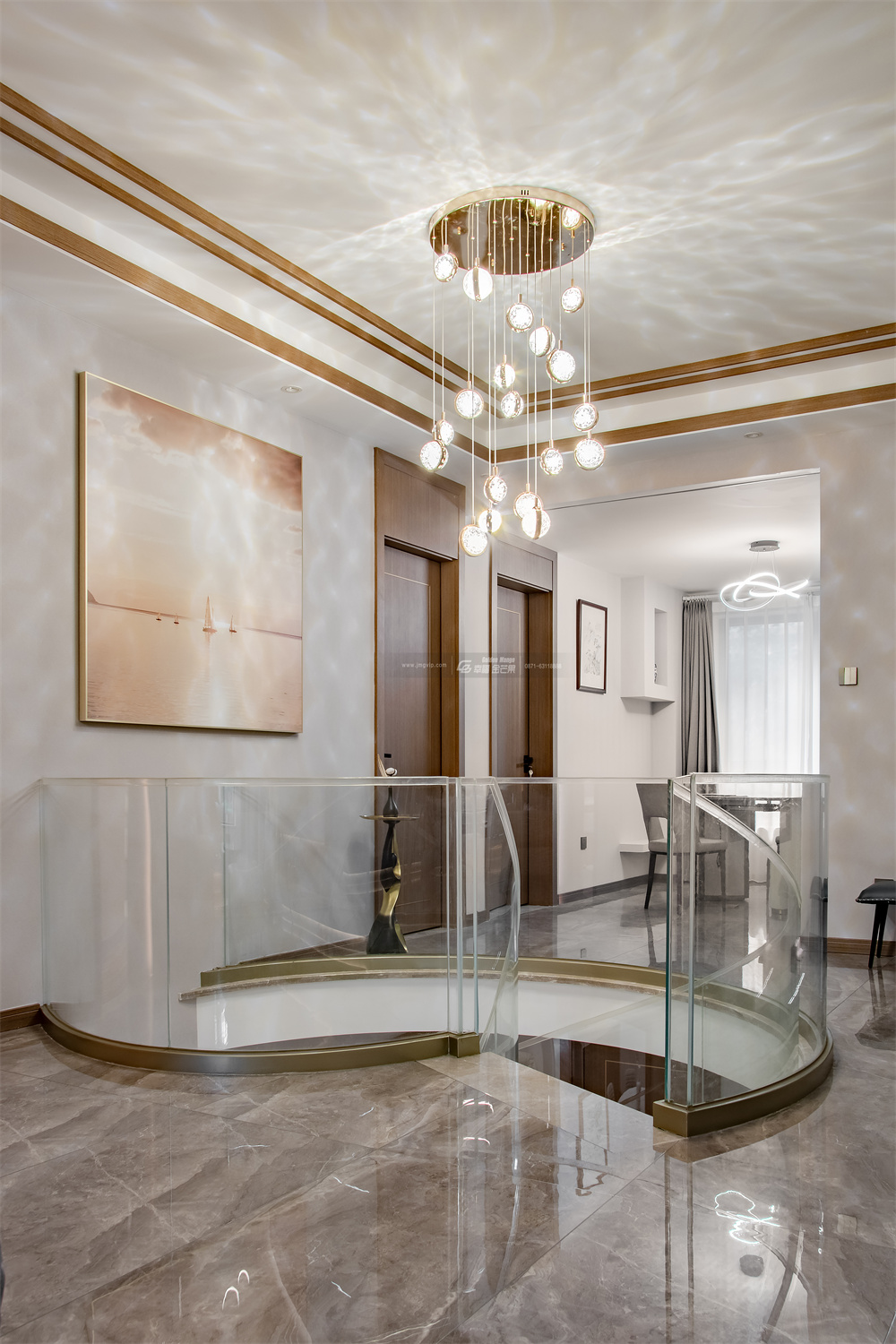 不同層次的大理石,起伏動人,以細膩而生動的描摹,表達著高端階層的審美品位和生活方式。瑩瑩的燈光,交錯間,營造出生活的華麗之資。