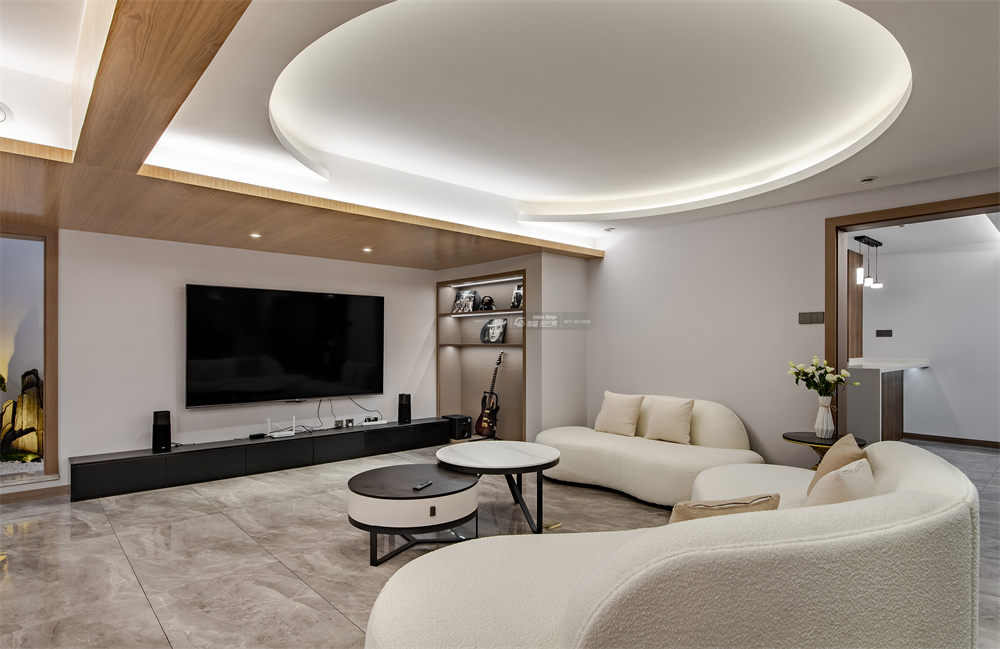 純凈清透的格調(diào),出世入世仿佛只是一個空間到另一個空間的轉(zhuǎn)換。不規(guī)則白色沙發(fā)蜿蜒靈動氣氛,融合黑色沉靜和木色的溫厚。二者相遇,碰撞出奇妙的氣場,讓空間簡潔卻富有張力。