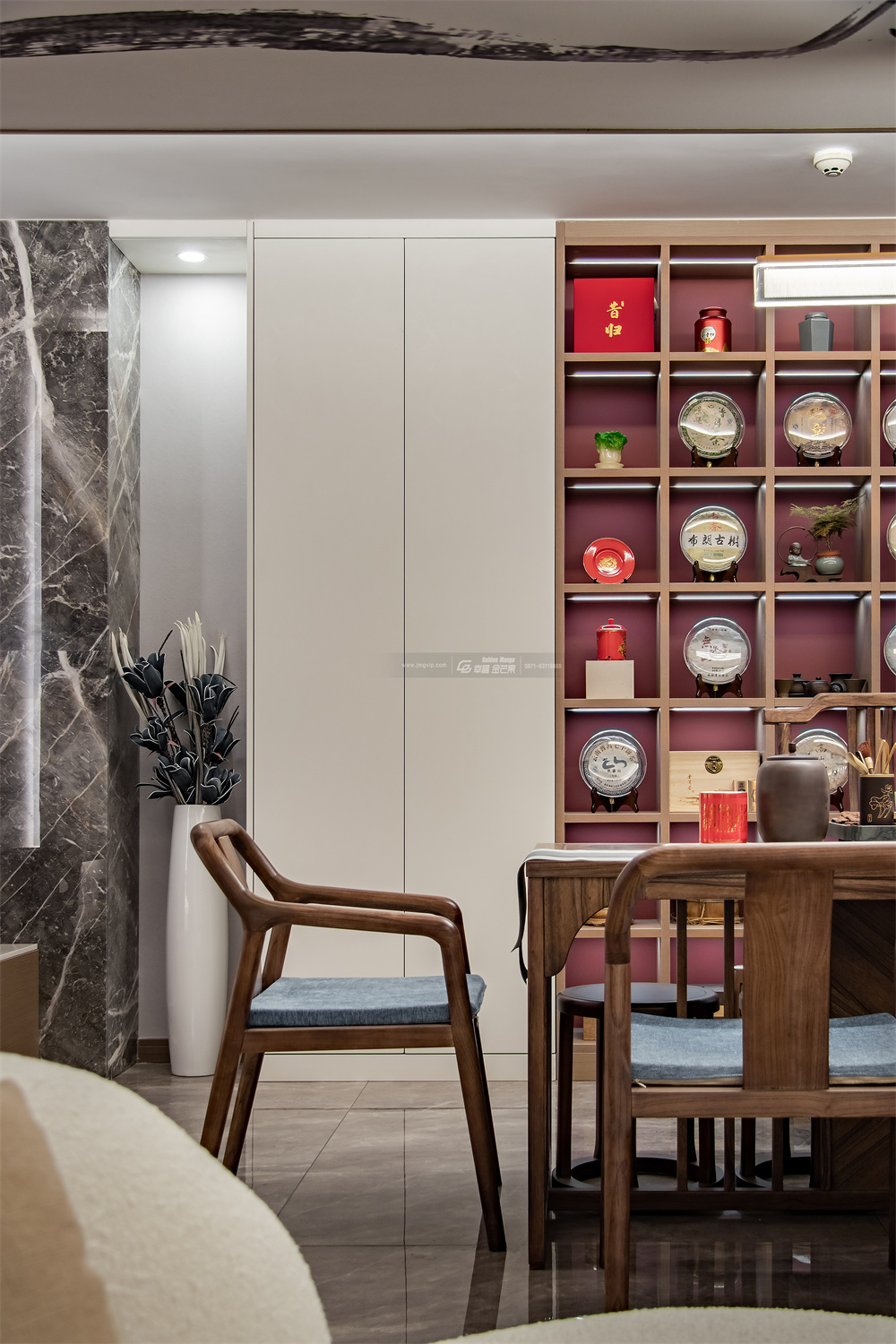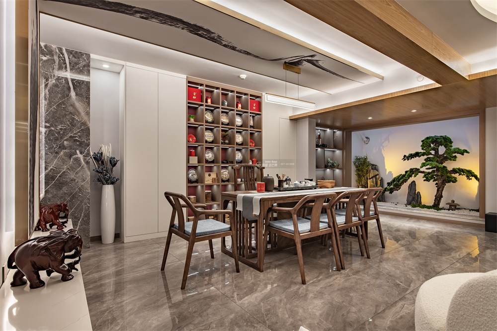 心隨禪境,靜心養(yǎng)神。無事啜茗,可對四季風景。當古木遇上朱紅,蔓延出婉約又貴氣的品質(zhì)感,其中不乏穿越時代般的現(xiàn)代時尚與高級。展露一個完整的家居內(nèi)涵里蘊含的精神人文主義。
