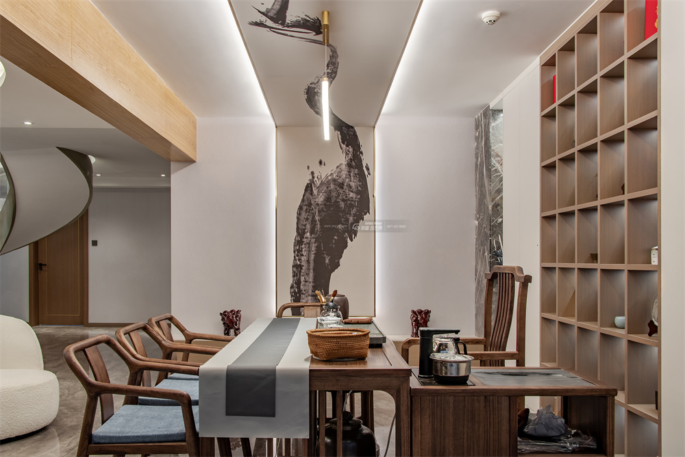 人生一愿,有間茶室,安頓身心,撫慰余生。古樸的茶桌椅、博古架,串聯(lián)起貫通古今的時代的印記。一幅山水畫,寄托屋主瀟灑逸然的閑思。偶寄閑情,暫忘喧囂,邀二三知交,煮茶、解語。