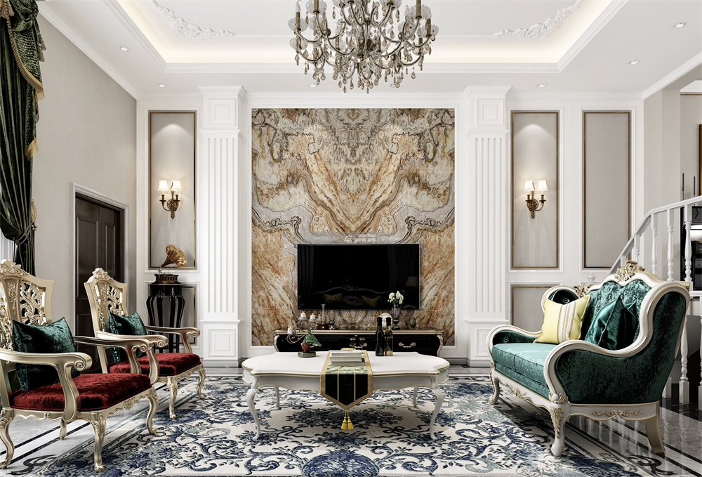 美觀的線條、精益求精的細節處理,使得空間質感和諧統一,地磚、地毯圖案皆為歐式經典花紋,還原歐式濃濃風韻,整個空間大氣磅礴、氣場十足!