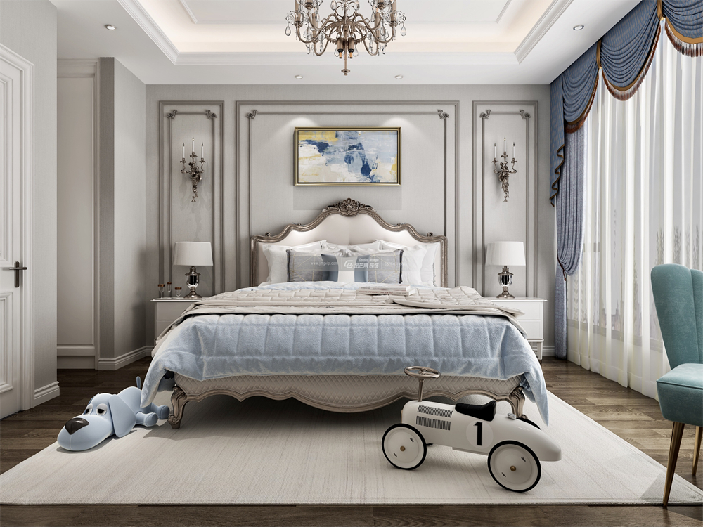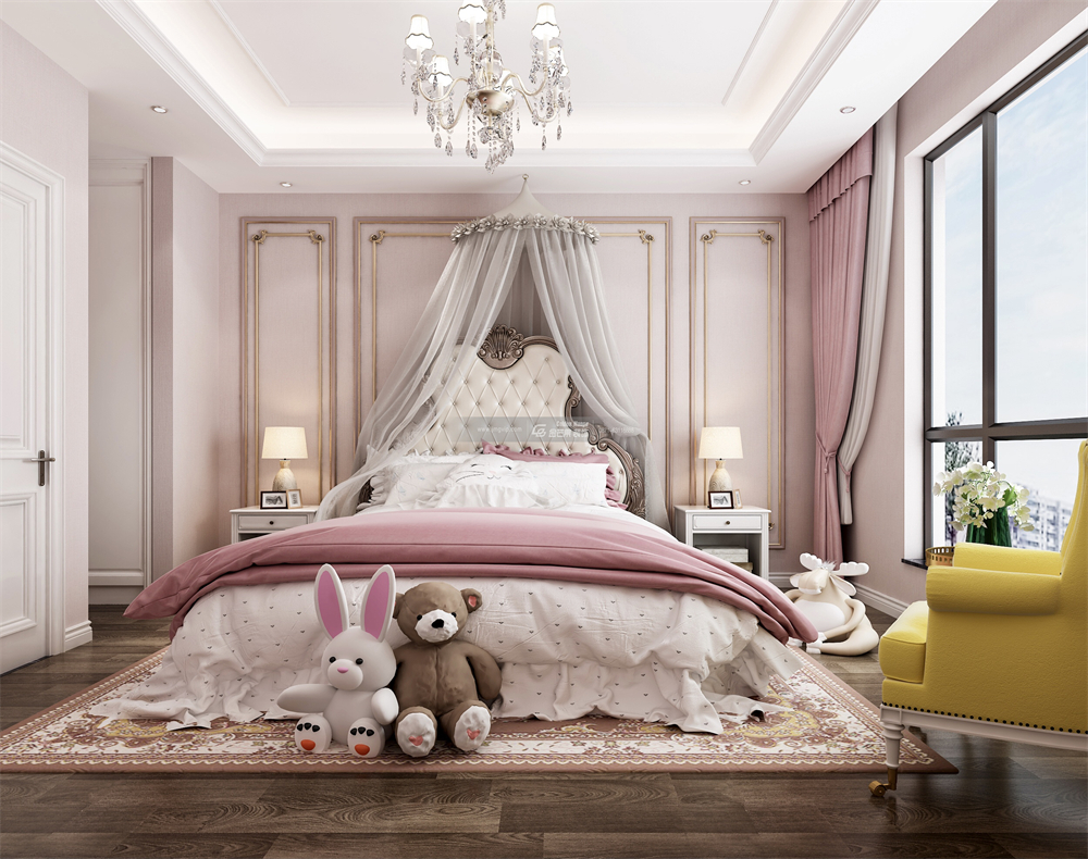 兒童房選用淺色系來打造,既保留歐式的風韻,又加入了兒童喜歡的色彩、卡通元素!