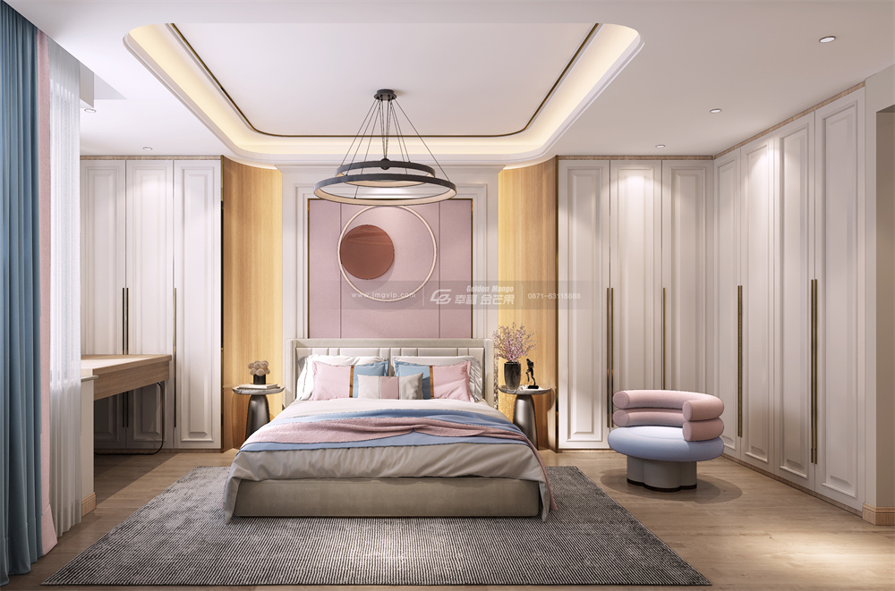 細膩柔軟的面料,親膚舒適好舒服,整個臥室空間溫馨甜美又高級感滿滿,在這樣的空間里休憩,感覺全身心都被治愈了!