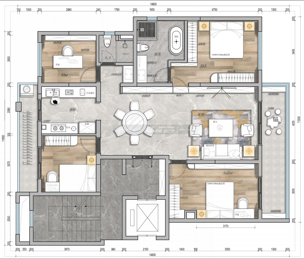3、擴大兒童房與主臥的衛生間面積,空間主人得到更佳的居住體驗。