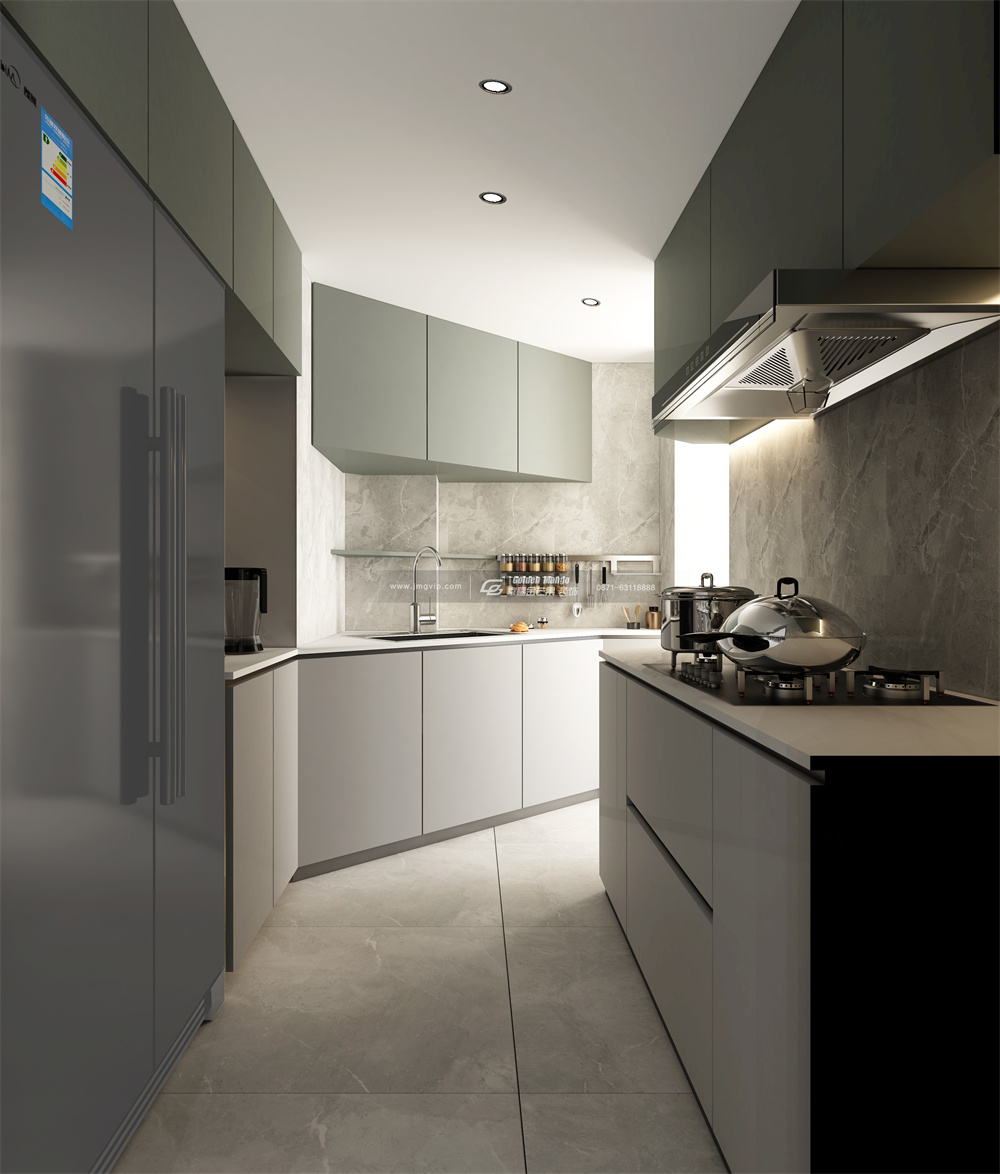 廚房正對餐廳空間,方便日常生活;異型的柜體設(shè)計,充分利用房屋本身的空間結(jié)構(gòu),最大程度地加強了廚房的實用性,整體室內(nèi)空間線條更加流暢。