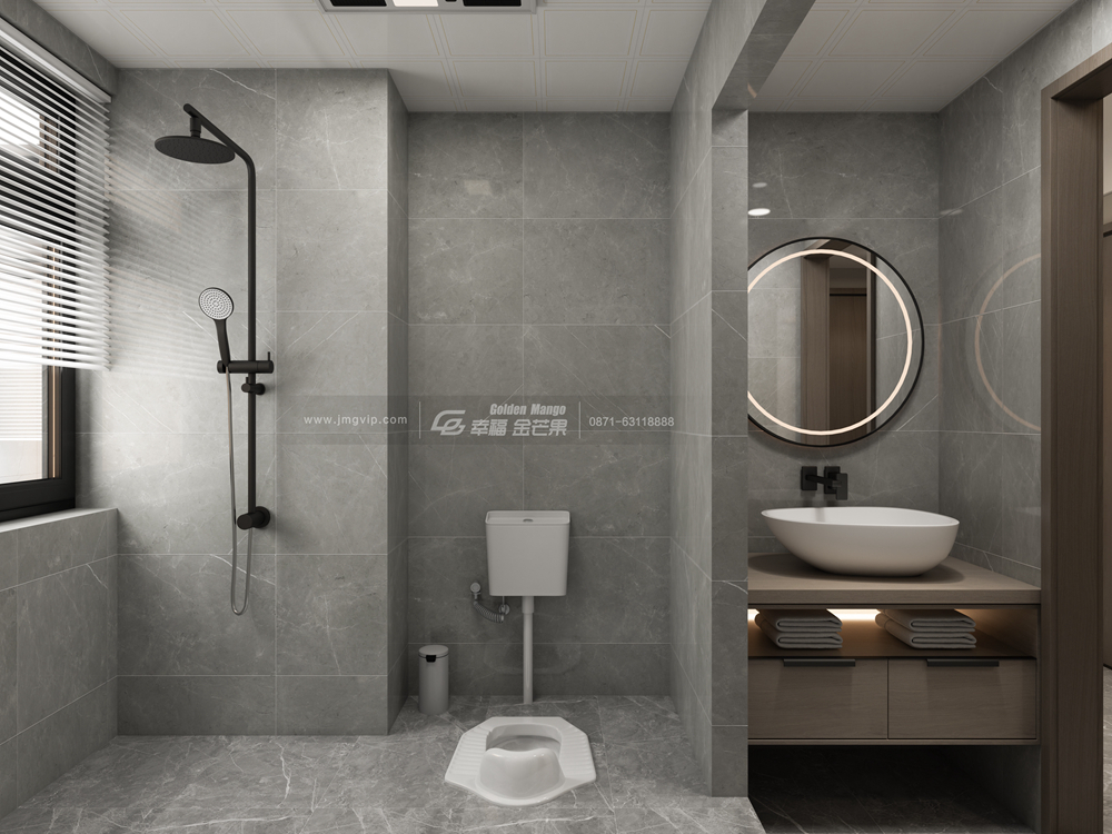 衛生間整體鋪貼灰色瓷磚,簡約的裝飾塑造出時尚高級感,耐臟又能維持家的“美貌”,干凈利落,讓人一眼就愛上。