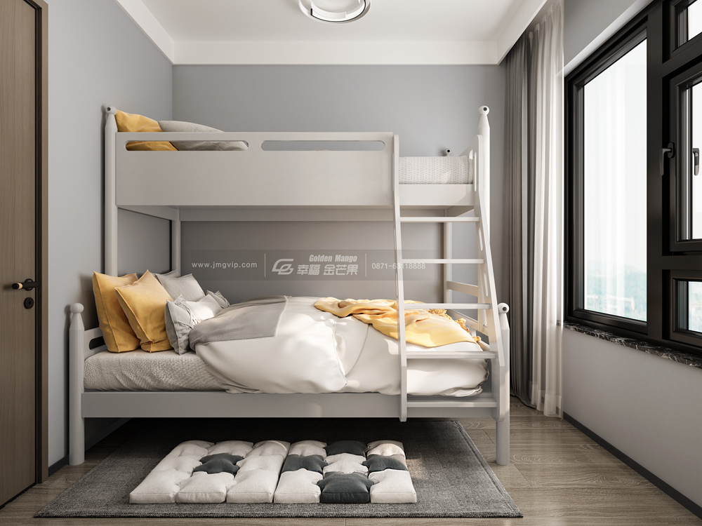 兒童房弱化整屋的灰色清冷色調與氣息,整體以柔軟舒適為主,把簡約留給大人,孩子更喜歡純真童趣的感覺。