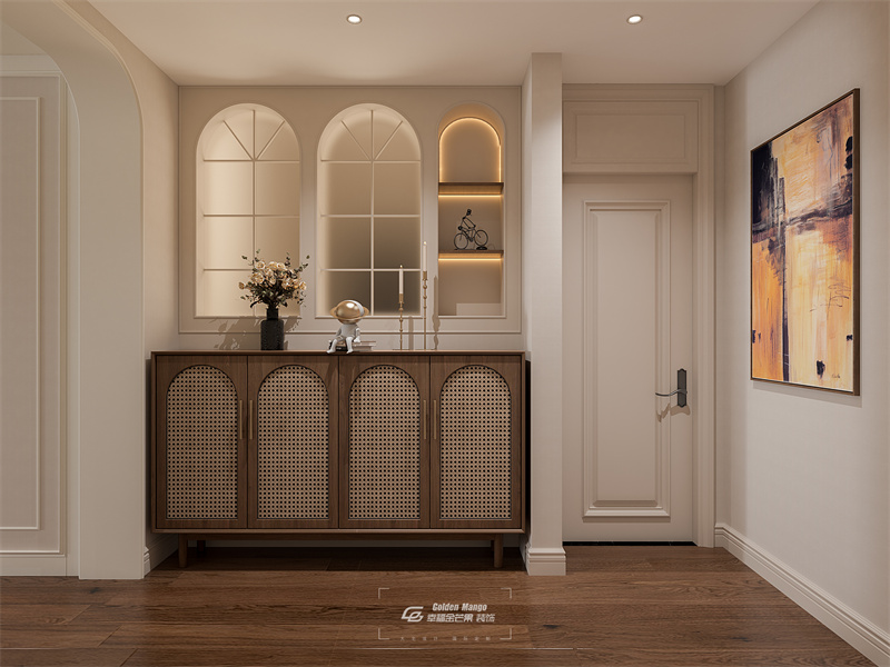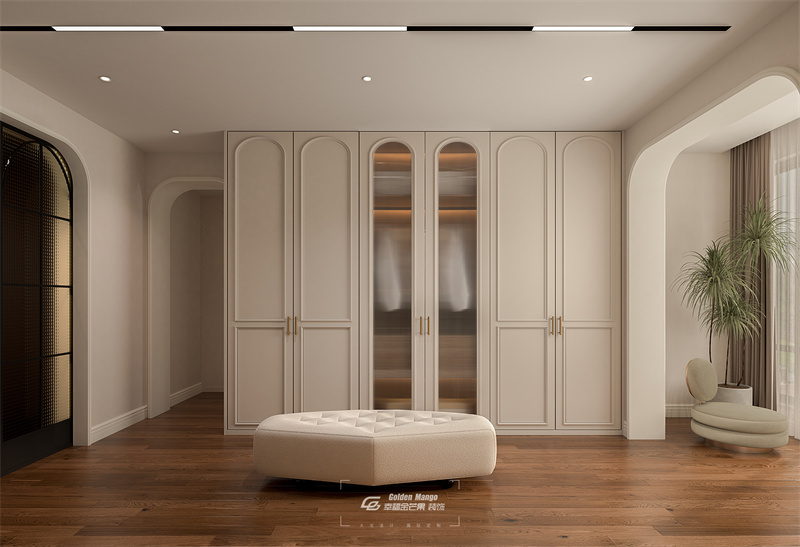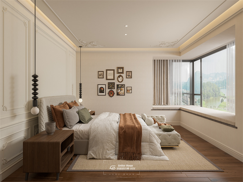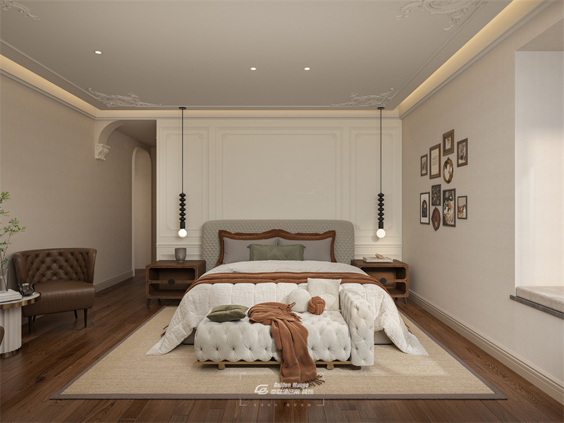 把裂痕裱進相框,回憶織成經網,復古的氛圍更顯溫馨。低飽和度的顏色,營造放松的氛圍,更有利于擁有良好的睡眠。法式的貴氣展露著低調的奢華,浪漫優雅的感覺彌漫在空間每一個角落。