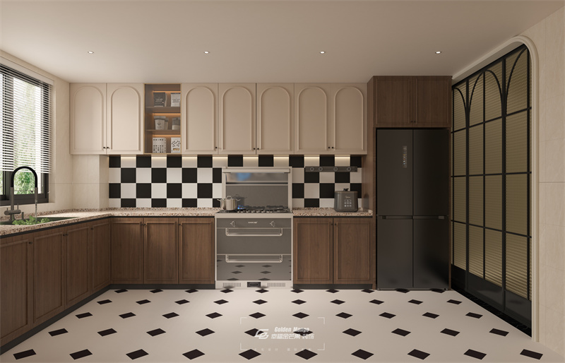 經典的棋盤格,對比鮮明卻又和諧融洽,設計師在繁復與簡約之間找到了二者的平衡,這里不再是一個普通的烹飪居所,而是變成了一方藝術展露之地。